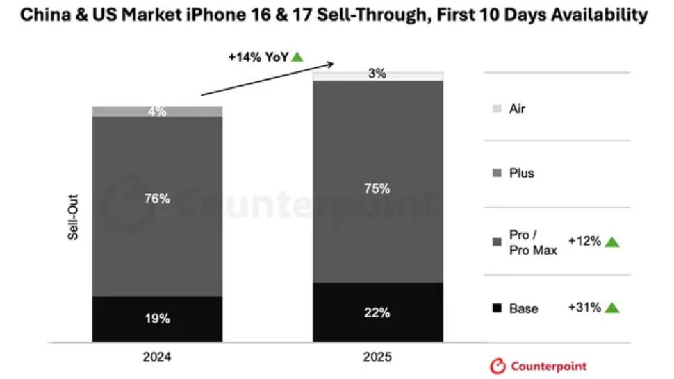 iPhone17系列首销10天销量超前代14% 中国市场标准版翻倍增长