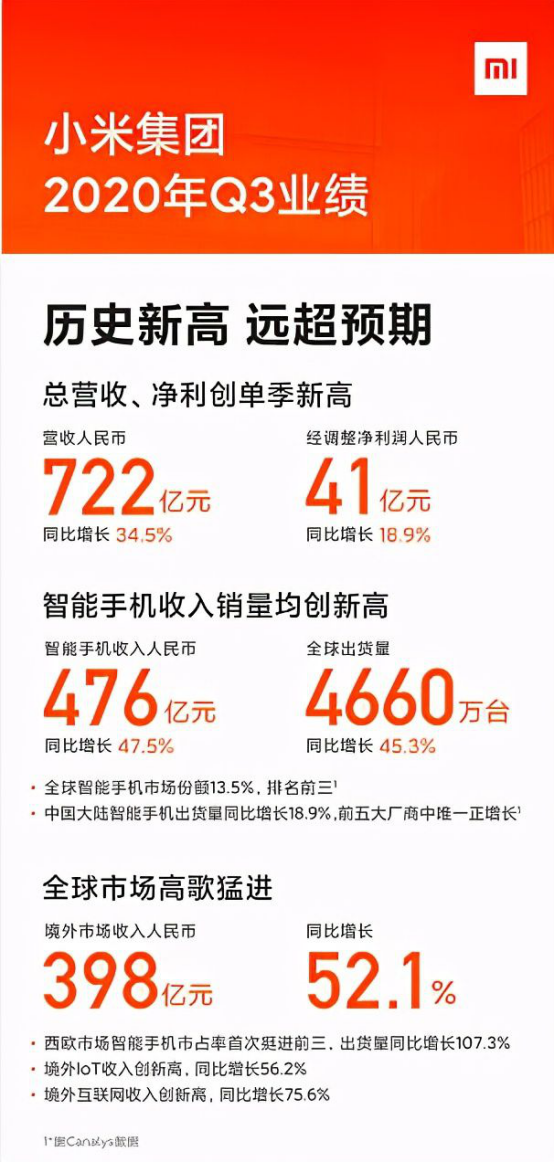 小米Q3财报:小米IoT与生活消费产品收入181亿元