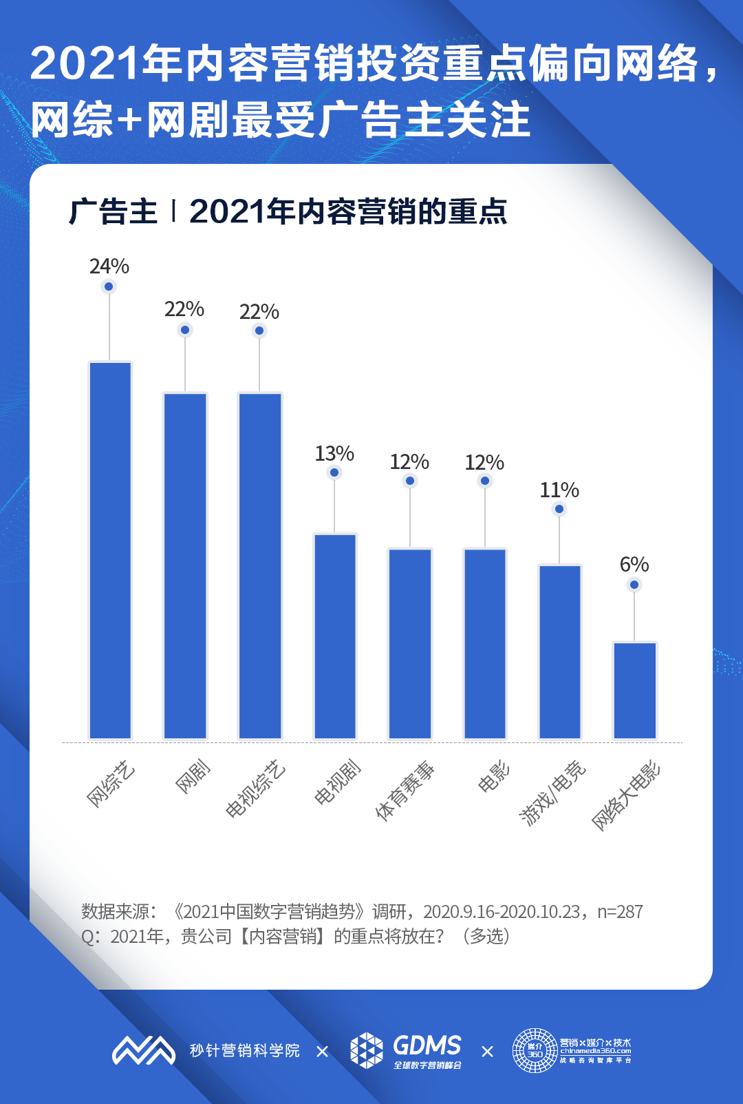 内容营销:2021年内容营销投资重点偏向网络,网综、网剧、电视综艺最受关注;