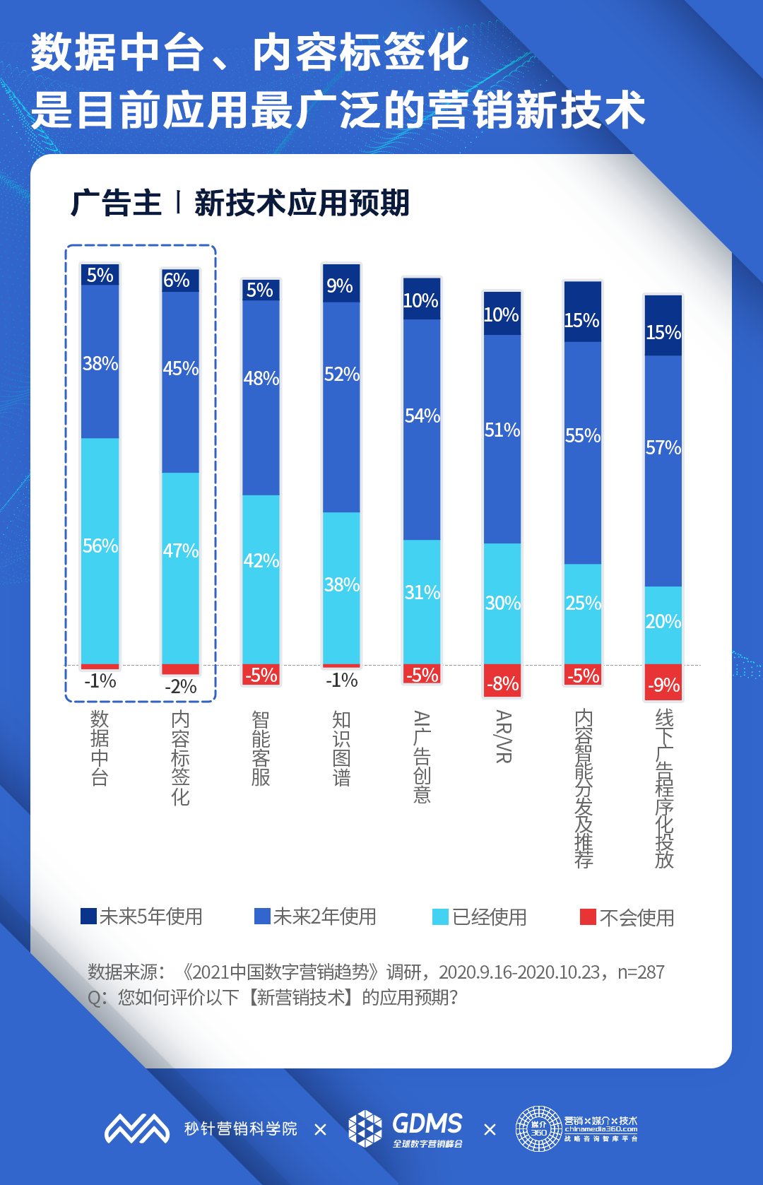 营销技术:数据中台、内容标签化是目前应用最广泛的营销新技术。