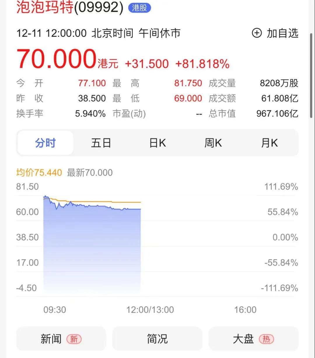 “萌”、“酷”、“小而美”、“有趣”......盲盒中的潮玩手办,年轻人已经买上瘾了!今日(12月11日),有“盲盒第一股”之称的泡泡玛特以9992为股票代码在香港联合交易所主板挂牌上市。上市首日,泡泡玛特高开超过100%,市值突破千亿港元。