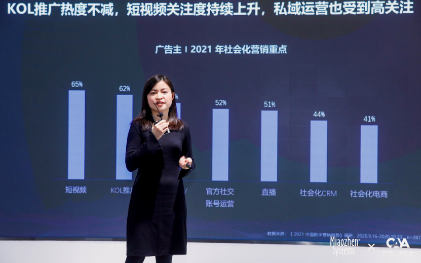 此前,秒针营销科学院发布的《2021中国数字营销趋势报告》显示,2021年,中国社会化营销预期增长率为19%,较2020年15%的实际增长率提升4个百分点。对比2019年至今的数据可以发现,短视频的关注度持续上升,KOL营销的热度持续较高,比例稳定,社群运营、私域流量也受到更多关注。