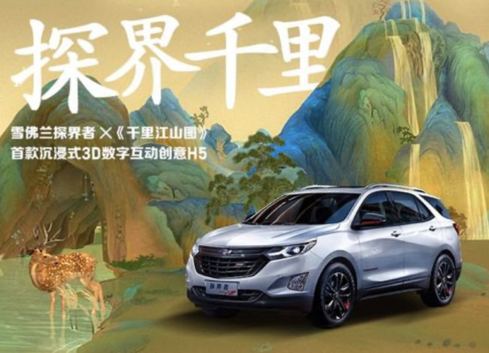 近几年我们看到国潮和传统文化在年轻人这样一个群体中复兴。基于这样一个洞察,我们为主打年轻人群的雪佛兰探界者这款车型打造了一个穿越时空的轻内容互动。将现代的技术和传统的文化进行了一个很好地融合。我们以车作为用户的眼睛,以车的视角带领用户徜徉在《千里江山图》的山水之间,从而完成了一次将历史宏大叙事和现代科技产品结晶的融合。这样一个内容之所以能够很好地传播,是因为它满足了创造流行背后非常重要的一个要素,就是超出消费者对于内容的预期。这样的一个H5显然超出了用户对于一则汽车广告的预期。