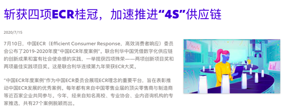 此外,联合利华自2018年开始打造4S(Swift & Agile-迅速敏捷,Smart-智能,Sustainable-可持续,Striving-进取)供应链,加速推进智慧供应链创新。通过实时数据可视,助力实现更高效的信息传递;通过自动化的自主运作和集成运作,更是大大提高了生产效率。