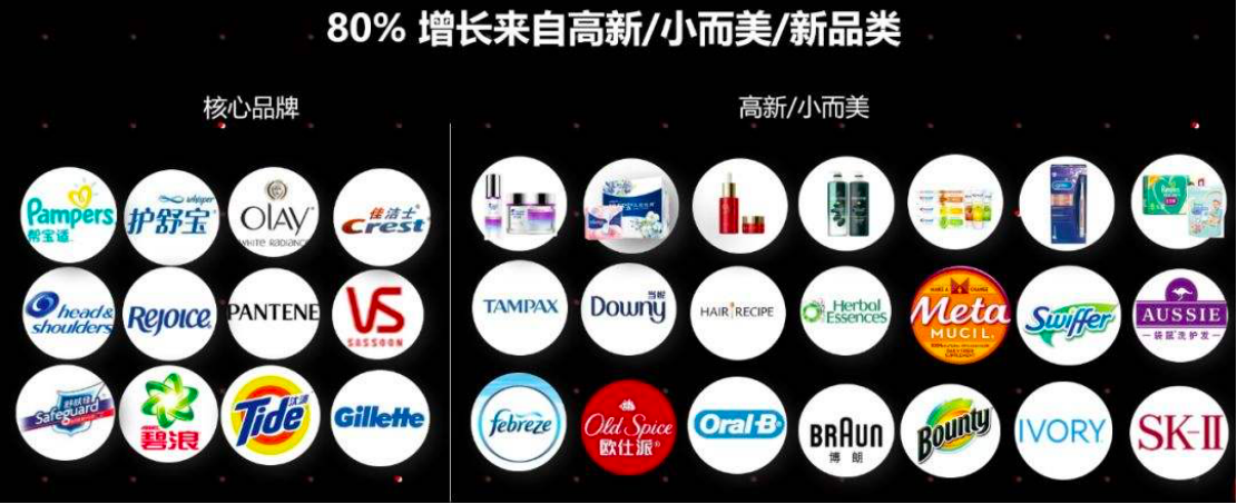 在瘦身的同时,宝洁也推出了十几个新品牌,比如SK-Ⅱ、欧乐b、Meta MUCIL,很多消费者并不知道它们是宝洁的产品,但这些小而美的品牌贡献了宝洁增长的80%。