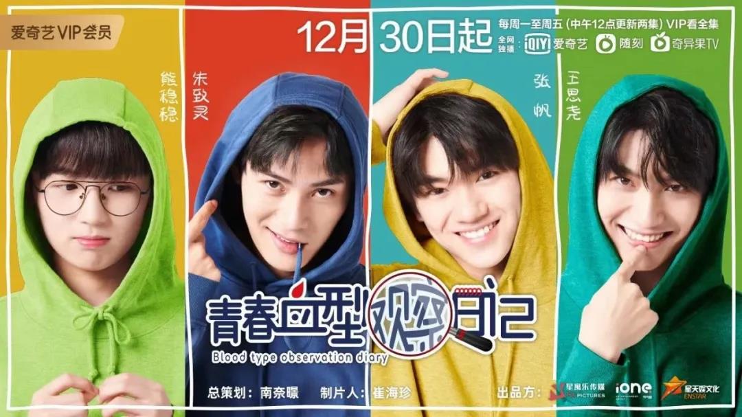 《青春血型观察日记》 是由星寓乐文化联合爱奇艺自制的青春类型的网剧。四位血型少年,A型血“好纠结”熊稳稳,B型血“无畏”朱致灵 ,O型血“真乐观”张帆,AB型血“司马双”王思尧,一起演绎属于他们的青春故事。