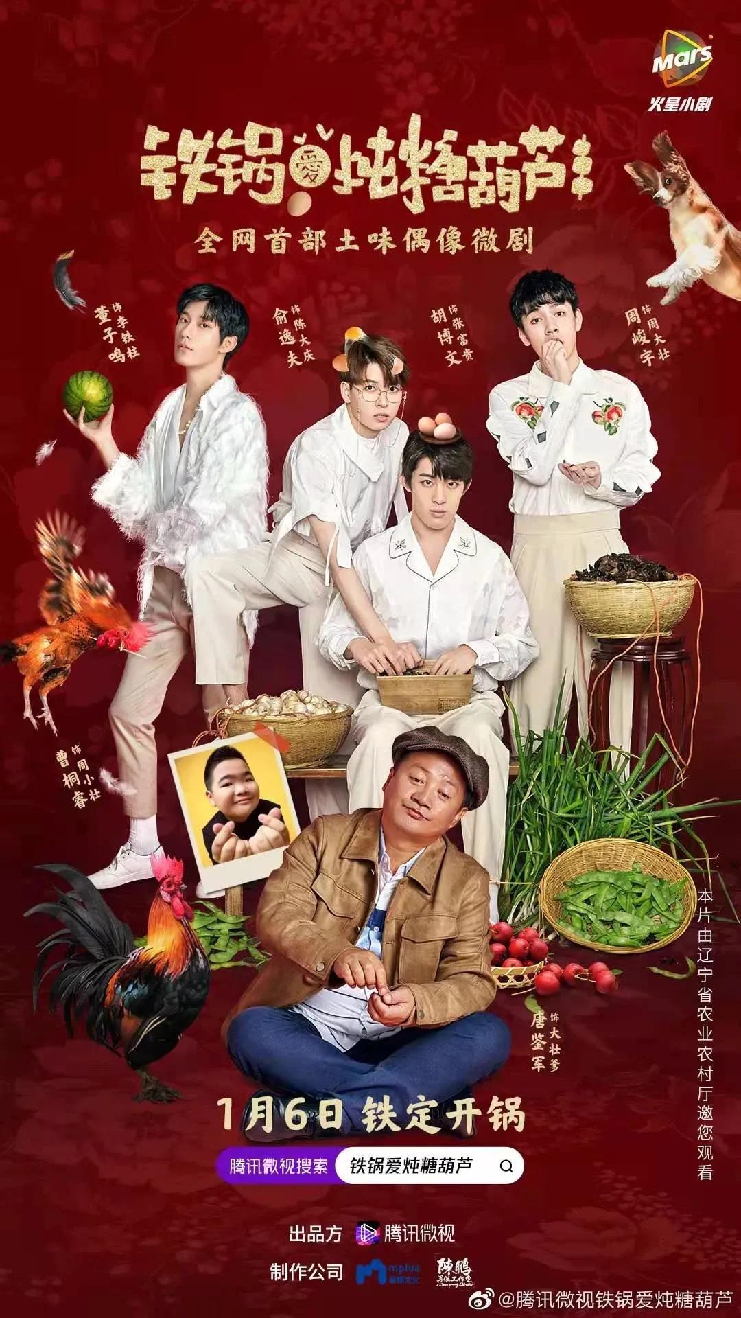 《铁锅爱炖糖葫芦》是由腾讯微视推出,由唐鉴军、曹桐睿主演的“土味”乡村偶像微剧。《乡村爱情》里扮演“谢广坤”和“谢腾飞”爷孙俩的演员唐鉴军、曹桐睿将在本剧中出演父子。