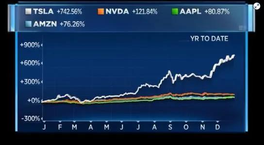 其中,特斯拉股价的疯狂飙升是最大的惊喜。该公司股价在2020年翻了7倍,将这家电动汽车制造商的市值从年初的760亿美元推升至周四收盘的6690亿美元。尽管受新冠疫情影响该公司最初一度关闭了工厂,其股价依旧大幅反弹,并在三季度交付了创纪录数量的电动汽车。