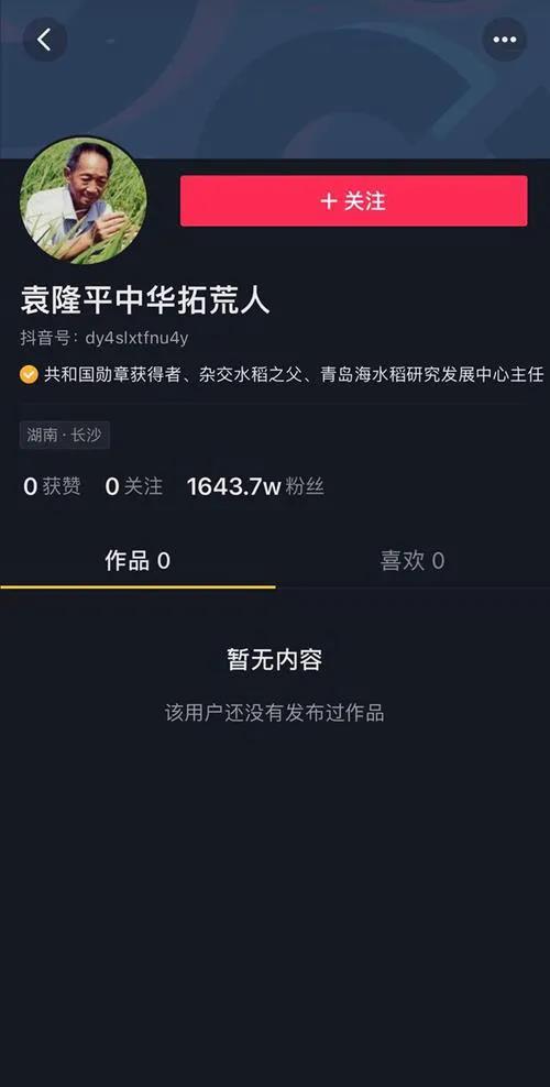 抖音发文说明袁隆平院士抖音官方账号“袁隆平中华拓荒人” 入驻过程