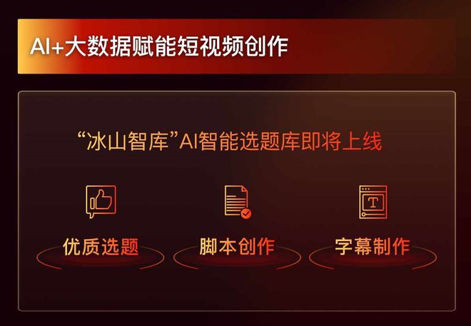 为帮助创作者解决“选题难”等问题,网易知识公路独创“冰山智库”AI智能选题库。运用AI技术和大数据能力,冰山智库把选题精细化的运营模式系统性输出,在内容创作的源头上确保视频内容 有趣有料、知识点直达、有实用价值、贴近生活日常。创作者可以在AI技术的辅助下,寻找优质选题,并完成脚本、字幕等素材的制作。这套视频创作辅助系统预计将在今年下半年正式上线。