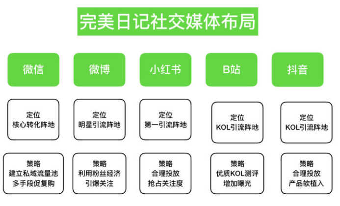 2018年布局小红书,通过超级KOL推荐引发关注;用垂类的头部/腰部kol完成试色种草;自建IP,通过泛娱乐视频吸粉+产品试色提高转化+挑战赛带话题等方式进行吸粉转化。