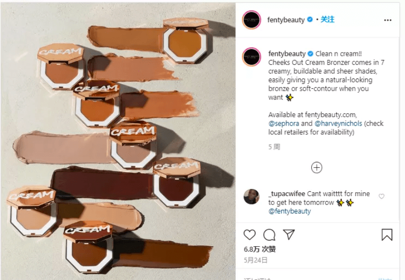 例如:Fenty Beauty。蕾哈娜(Rihanna)创立化妆品品牌时,不仅拥有少量的化妆品色调,而且还推出了40种不同的底色,几乎可以满足购物者的各种肤色。该品牌通过在光谱的所有末端开发出更多的阴影来继续赢得Z世代的青睐。