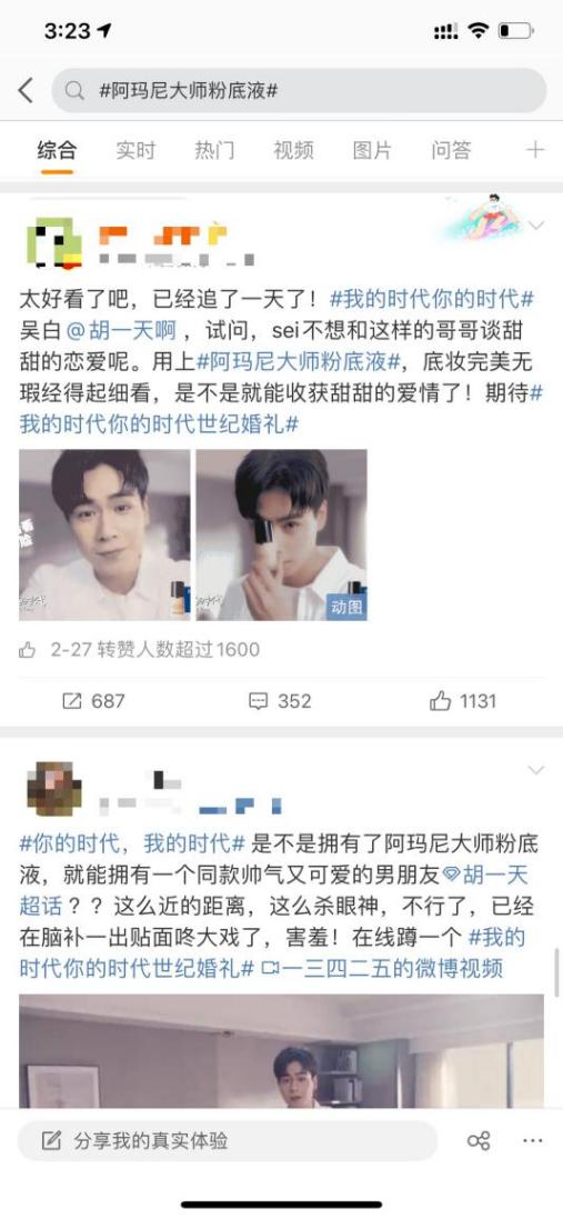 作为观众,追剧时,我们可能被迫被剧中吴白、艾情喂满满狗粮,社交媒体上我们也可以更自由发问,“是不是拥有了阿玛尼大师粉底液,就能拥有一个同款帅气又可爱的男朋友?”在胡一天的粉丝超话及相关话题之下,诸如此类的粉丝心声此起彼伏。这所体现的实则是年轻用户具备的强社交诉求。