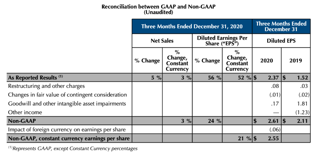 1、排除外汇、收购和剥离的净影响,有机销售也增长了8%;