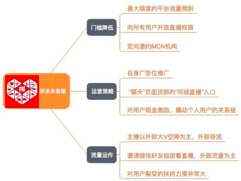 直播、拼小圈、快团团是拼多多已经推出的三个战略产品,其中,拼小圈核心KPI是好友数,直播核心KPI是商家入驻数量。而在拼多多内部,直播被放到了非常重要的战略地位。