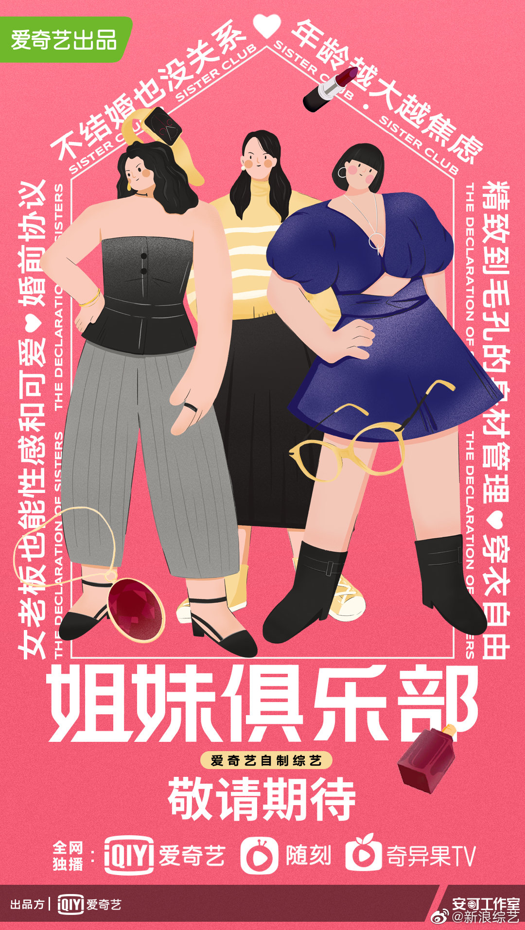 综艺亮点:《 姐妹俱乐部 》 是2021 年爱奇艺自制聚焦女性的年轻态创新综艺剧。3位固定女主角和n位飞行男配角 , 以喜剧视角聚焦女性议题 , 在欢乐氛围中输出狠辣的吐槽和讽刺 , 开创 "综艺真人秀"+" 胄景喜剧"于一体的全新节目, 用故事的温 度柔化尖锐议题 , 以喜剧的智慧拆解两性迷思。
