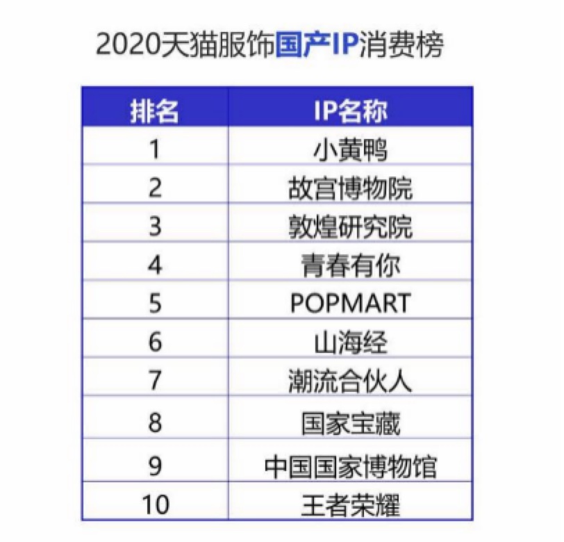 近日,天猫服饰联合IP二厂发布《2021天猫服饰IP白皮书》,白皮书公布的“2020天猫服饰国产IP消费榜”中,爱奇艺原创综艺《青春有你》和《潮流合伙人》均出现在TOP10里。在看综艺节目时种草和购买同款,成了年轻人当下最有自我表达意识的新消费方式。