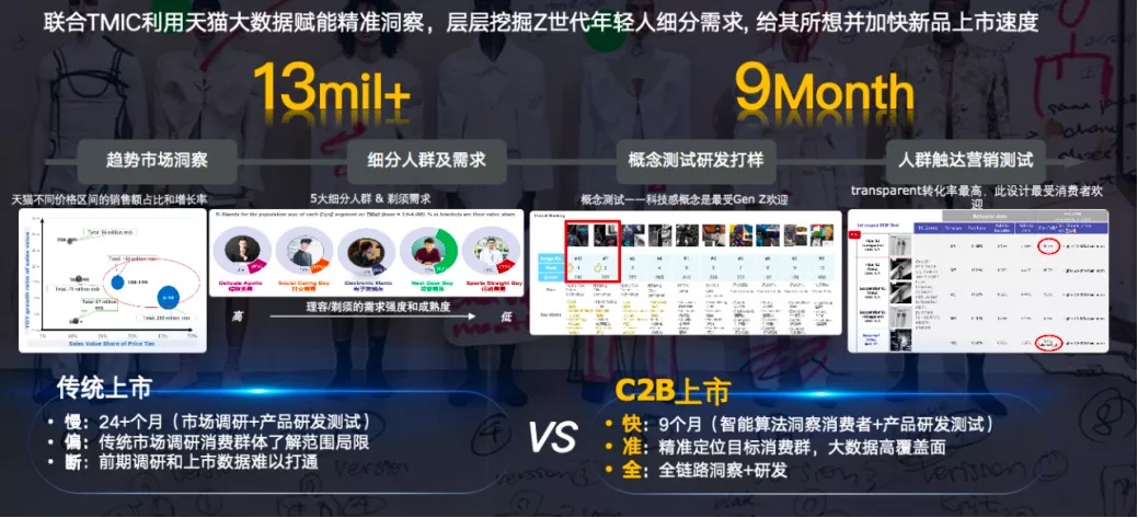基于智能算法的全链路洞察+研发,将传统新品24个月以上的上市时间缩短到9个月。这是飞利浦全球历史上第1款C2B产品,而飞利浦也是中国消电行业第1个与天猫共创C2B的国际品牌。