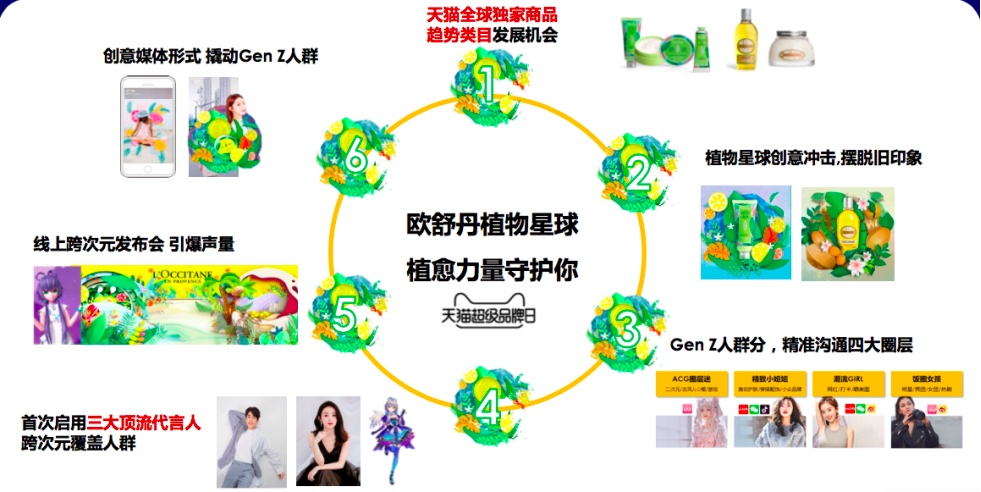 欧舒丹品牌以年轻群体为主,借助直播、短视频和图文等形式,通过植物星球滤镜等创意媒体形式引发创意内容,达到全网传播,加之抖音挑战赛开启DIY植物星球滤镜,配合硬广资源引爆二次传播,而“女王节消费老客随单派发超品邀请函”、“新客绑卡入会优惠券”等CRM举措配合,收到了二次种草的效果。最终,欧舒丹的各项指标大幅提升,品牌GMV同比增速+243%,身体品类市占率提升102%,GenZ渗透规模提升40%,GenZ成交占比达16%。