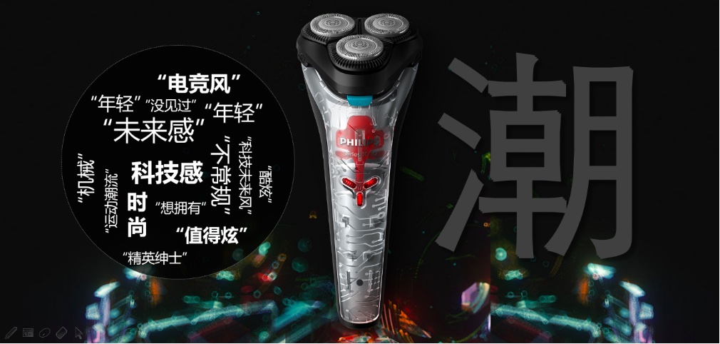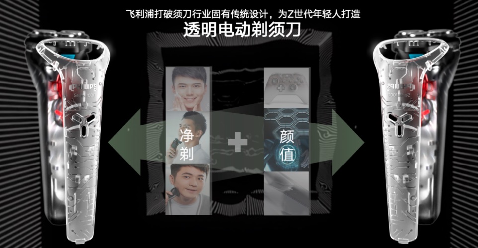 飞利浦联合TMIC利用天猫大数据赋能精准洞察,通过“趋势市场洞察-细分人群及需求-概念测试研发打样-人群触达营销测试”全流程,层层挖掘Z世代年轻人细分需求,打破须刀行业固有传统设计,为Z世代年轻人打造——透明电动剃须刀“旋风Z”。