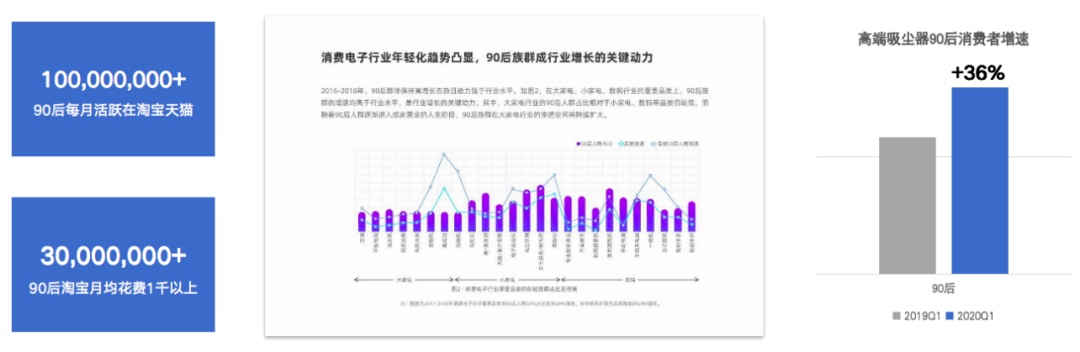 对此,阿里妈妈给出的营销方案是新品发布会打爆新品。阿里妈妈通过数据洞察,得出戴森地面清洁品类消费者年龄层分布,以及购买戴森吸尘品类的年龄层对比及增长,通过品类细分,挖掘出“轻量无绳吸尘器”吸引年轻群体的巨大潜能,并创造了一场别开生面的“小紫仙”新品发布会。
