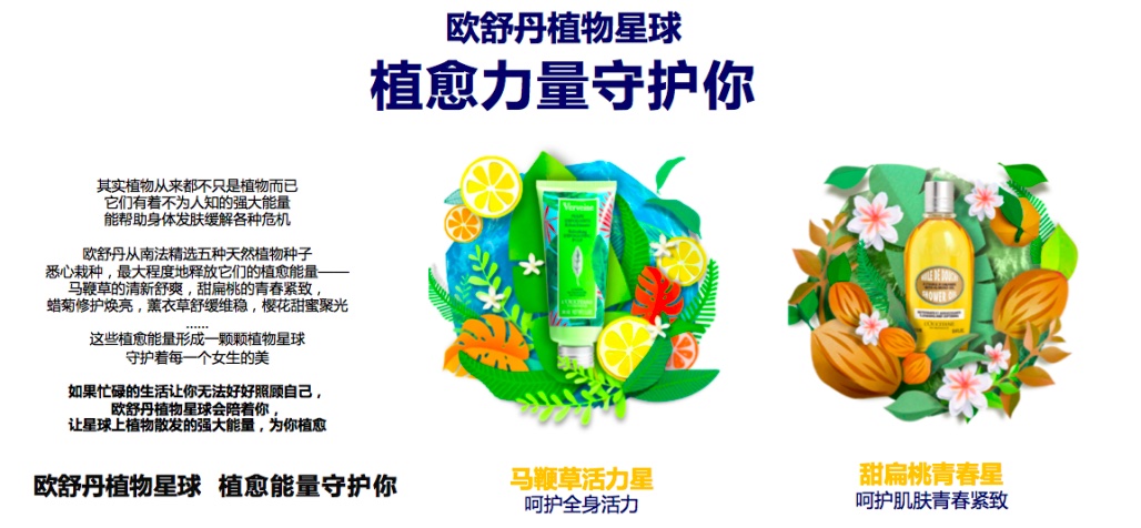 线上身体护理品类增长潜力巨大,但“盘子小、季节局限、品牌现有人群年龄偏大”是很多护肤品牌面临的共同痛点,欧舒丹也不例外。针对其痛点,阿里妈妈通过大数据洞察帮助欧舒丹制定品牌焕新和以新品拓新客的策略。一方面,通过植物星球创意冲击,摆脱旧印象;另一方面,筛选出甜扁桃、蜡菊、樱花等拉新能力强劲的功效型产品,进行限量版预售。
