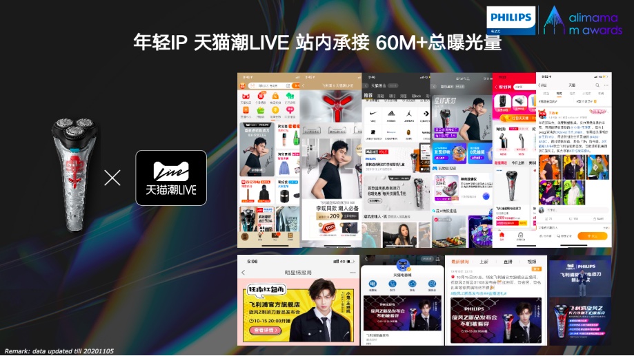 在飞利浦的新品旋风Z”上新时,阿里妈妈依托数据技术找到全网所有对剃须刀有较强个性化性需求的人群,包含对热门产品的关注人群、行业人群、泛剃须刀受众等,跨类目拉新,抢夺类目流量;并从多个维度对人群进行沟通,针对不同人群的需求点为飞利浦提供了全域营销产品矩阵的资源优化配比,高效渠道追加投资,高效人群(Z世代)优先投满,并以站内外联动搜索穹顶、动态视频首猜、新品3D展示等创新工具赋能新品营销;最后配合天猫潮LIVE将受众的关注度拉至高潮,站内承接最终触达60M+总曝光量,实现旺季前的高效拉新。