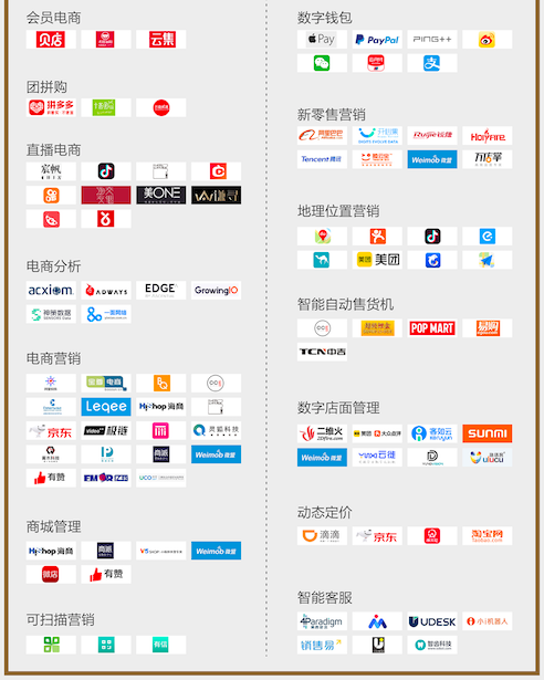交易(Commerce):分为线上(电商/自有电商)路径和线下(零售/Kiosk/数字店面管理)路径。