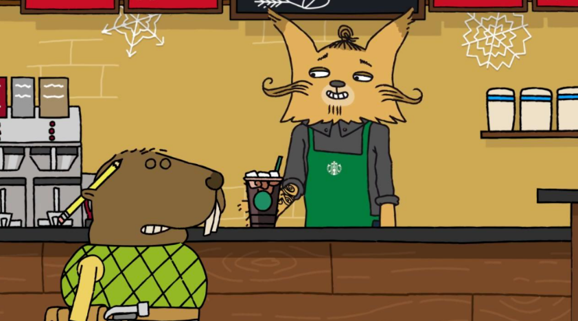 故事的主角是咖啡店里一群画风清奇的小动物:店长棕熊Julie、咖啡师狸猫Diego、店员章鱼Iggy,以及一直泡在星巴克的常客河狸Chet……动画片围绕星巴克门店情景展开,通过日常的琐碎趣事,含蓄地表达了星巴克的门店文化、顾客情感与品牌调性。