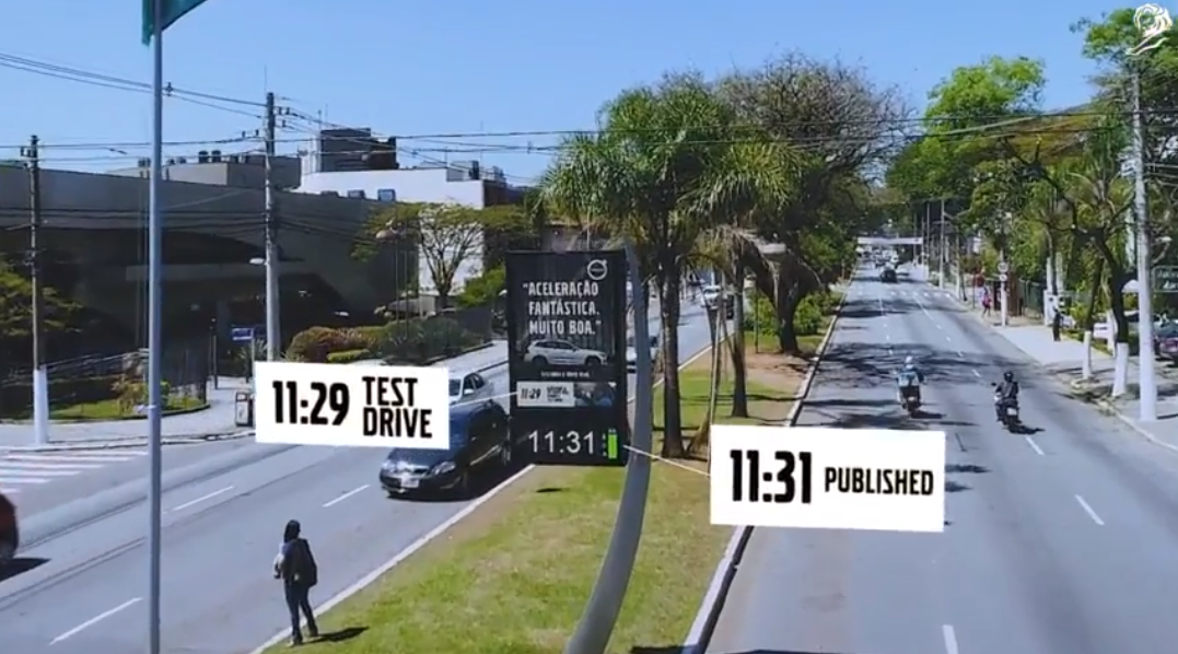 比如沃尔沃汽车曾在巴西1000多个数字广告牌上展开了一次实时更新广告语的户外广告活动。沃尔沃在户外广告牌上同步试驾人对新车的评论,每个广告都相当于是实时制作和发布的。人们的评论变成广告语被制作出来,并被推到了广告牌上,若有消费者产生新的试驾行为,循环也将再次开始,广告牌也将不断更新。