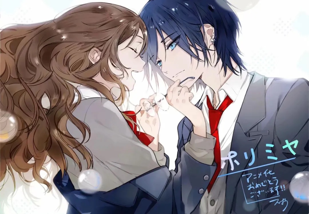 其次,抛开剧情本身,堀与宫村大大的作画水平一直在线,正中大家的审美。并且在人物形象上也做足了功夫,不仅性格特点鲜明,也不是千篇一律的番剧男女主形象。这样一部纯粹糖作+狗粮作全程无尿点的纯爱番,真的不容错过!