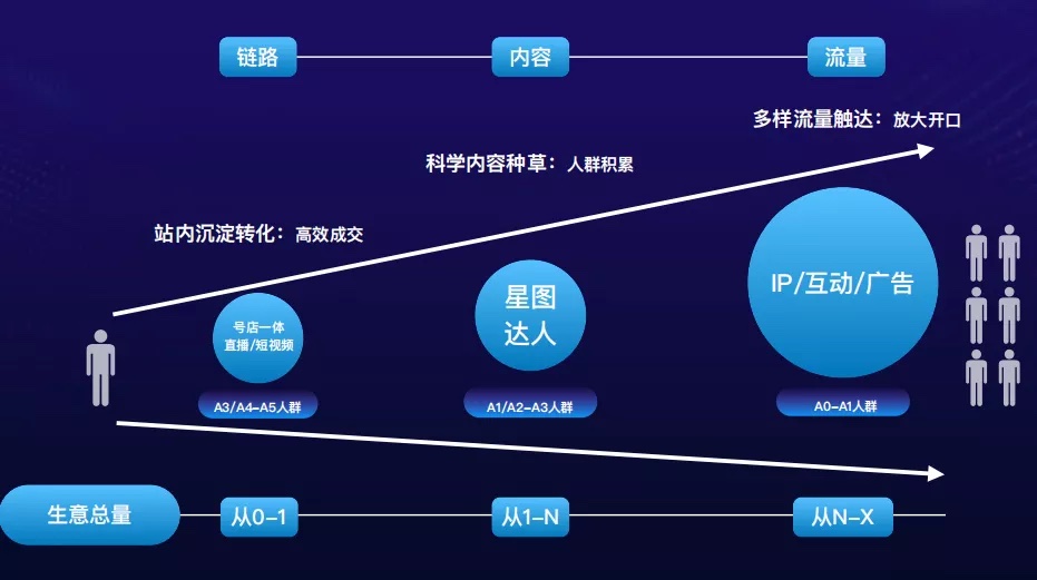 巨量引擎大众消费中心食品饮料行业总经理张伟嘉指出,在从0-1阶段,商家可以从离生意最近的站内成交人群入手,通过抖音号店一体、直播、短视频的布局,提升转化效率,完成种子人群积累。