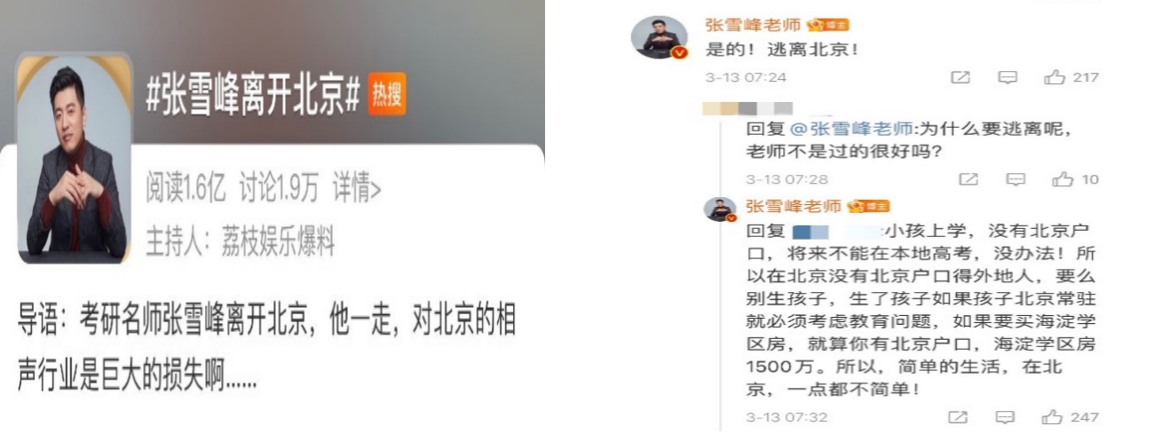 一时间涌起了太多的揣测,大家关注的重点是“北京户口”“一线城市生存”“逃离北上广”“学区房”。