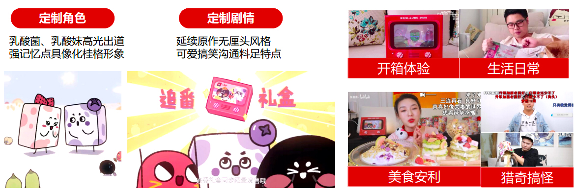 2020年4月,桂格新品大果粒乳酸菌麦片即将上市,新加果干、酸奶块,主打年轻女性,桂格合作《请吃红小豆吧!》3,定制麦果脆角色打造爆款番外,用趣味且年轻化的语言演绎“美味、有料”的产品卖点,并联合多圈层UP主围绕IP合作共创内容进一步铺开覆盖更多TA。UP主围绕桂格红小豆创作多元内容,邀约广告绑定UP合作视频,构建电商通路实现边看边买。