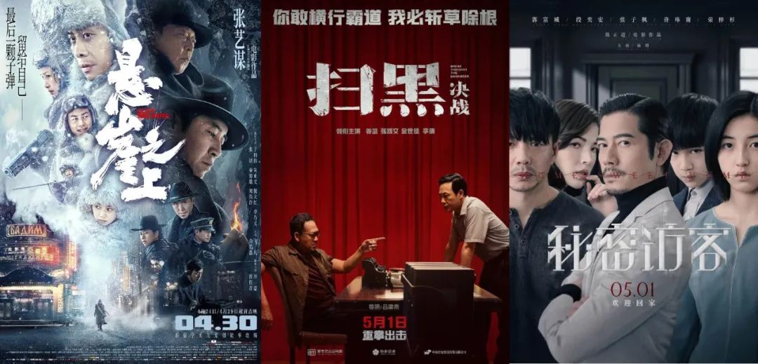 今年五一档影片在类型题材的广度上也同样创造了历史新高,13部新片集合了悬疑、爱情、喜剧、奇幻、动画、动作、冒险等多个类型。在这其中,悬疑和冒险类型占比最高,总计达到6部,包括张艺谋执导的《悬崖之上》、陈正道执导的《秘密访客》等;紧随其后的是动作和喜剧片,数量达到5部,其中最受关注的一部为王晶执导的《追虎擒龙》,影片汇集了古天乐、梁家辉、吴镇宇、林家栋四大影帝,阵容堪称豪华,由于影片题材与王晶此前执导的《追龙》具有高度相似性,因此也有望成为档期爆款。
