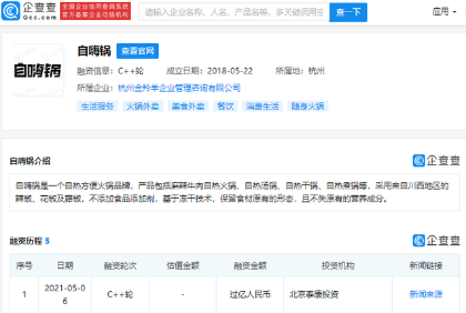 自热方便火锅品牌“自嗨锅“完成逾亿元C++轮融资,由北京泰康投资独家投资。自嗨锅方面表示,此轮融资资金将重点投入于新品牌打造、供应链建设、产品研发和创新。