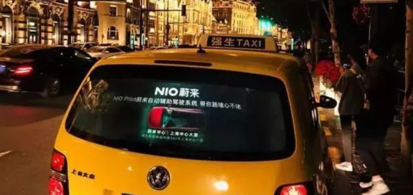 2019年10月,一位蔚来车主承包了上海12000辆出租车广告屏幕。有人按照市场行情来推算,这波投放大概价值两三百万元——相当于五六辆顶配ES8的总价。