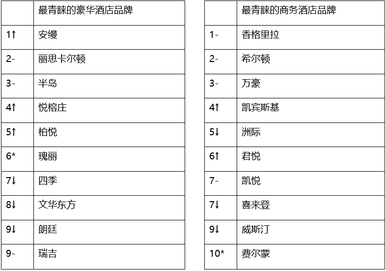 豪华酒店方面,安缦上升一位,成为最青睐的豪华酒店品牌。丽思卡尔顿第二,半导继续保持第三。悦榕庄和柏悦上升至第四和第五。瑰丽新上榜。
