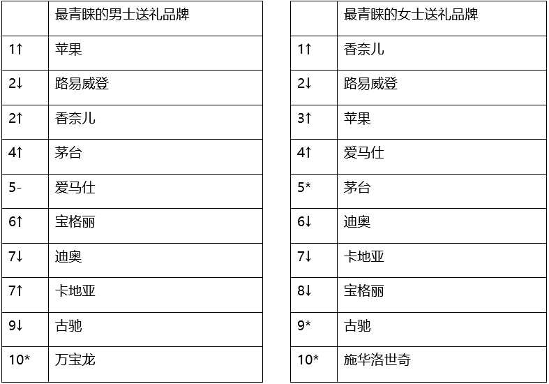 最受青睐的女士礼物前三名是化妆品、珠宝和配饰。其中选择配饰的比例增幅较大。爱马仕在配饰中大放异彩,是目前男女士都最为青睐的配饰品牌。