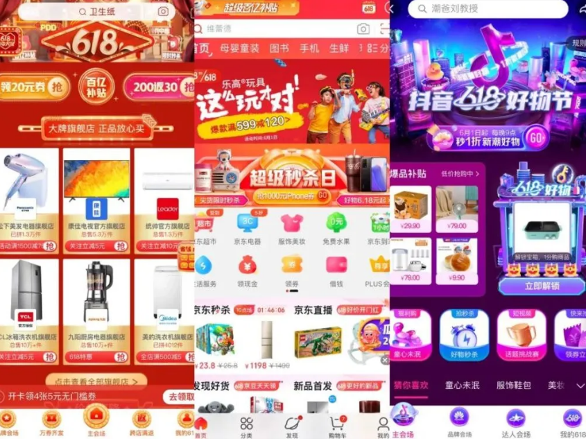 618年年有,今年更不同。不再是只属于阿里巴巴、京东、拼多多的“三国杀”,短视频平台抖音、快手的加入,加剧了这场电商大战的激烈程度。