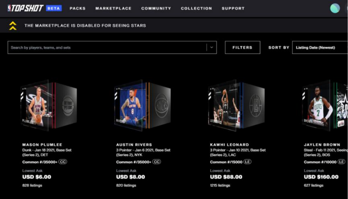 到了2020年下半年,Dapper Labs再次向公众发布NFT重磅项目——NBA Top Shot。截止2021年5月初,NBA Top Shot共有26万多名买家,交易额超过5.6亿美元。