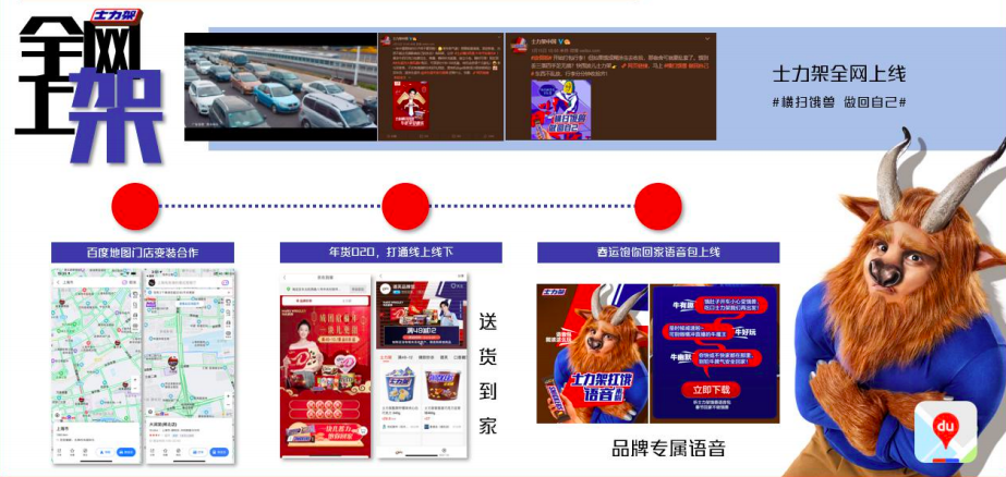 长期以来士力架在大量的TVC中传递着经典的广告内核:饿了就吃士力架。那么,如何通过新媒介的合作,实现带货方式创新提效?士力架与百度地图合作,打造了一场“人-货-场”融合的沉浸式带货营销。