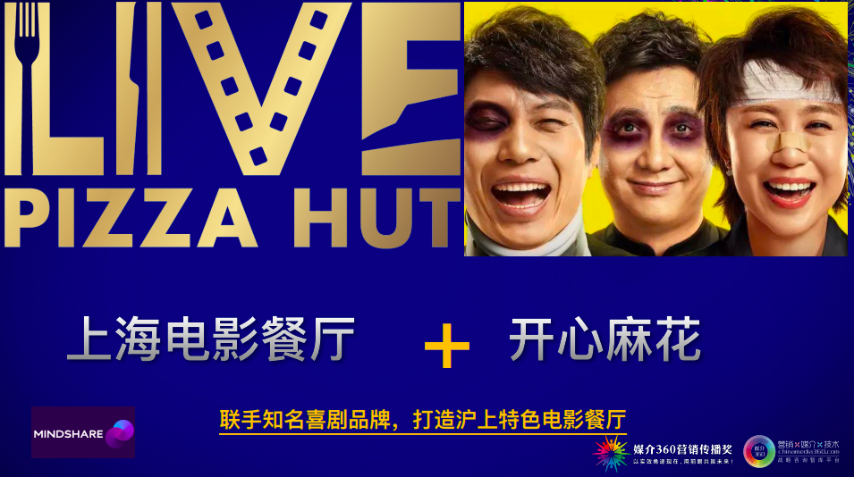 必胜客重新打造⼈货场-通过对年轻⼈⽂化及消费新需求的洞察,打造上海⾸家沉浸式电影主题餐厅,以创新新潮的形象,针对性的餐品重新赢得年轻⼈的感知和⻘睐。