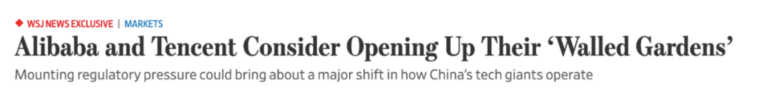 阿里和腾讯发展至今事实上已经成为国民经济的关键基础设施,也是我国在全球互联网竞争中的两大主力,肩负着“中国经济,辐射全球”的使命。如果继续在内卷之中高筑壁垒,斗下去会是两败俱伤。长远来看不仅不利于国民经济的正常运行,且有违国家反垄断的意志。