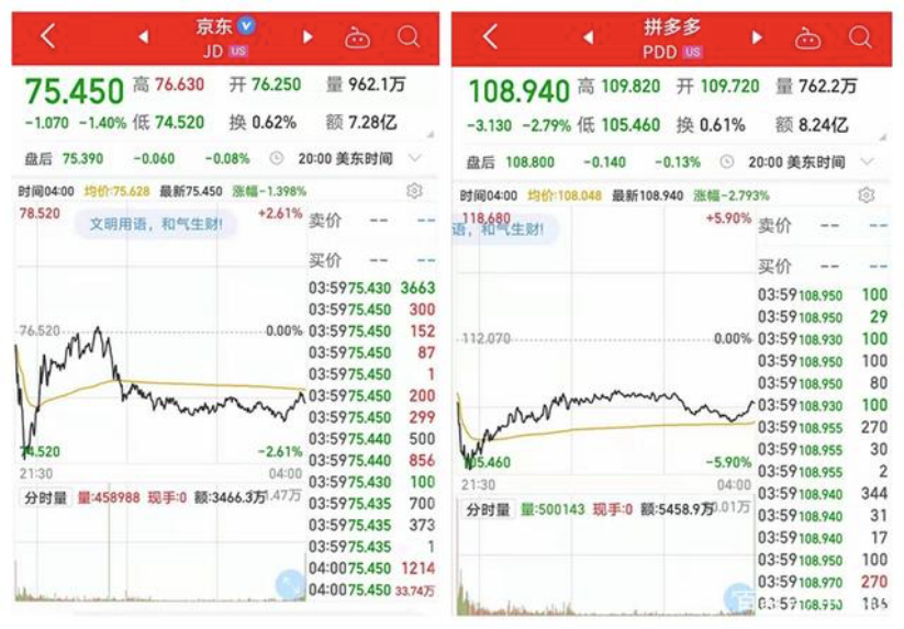 消息公布后,拼多多股价开盘后一度跌幅达5.9%。