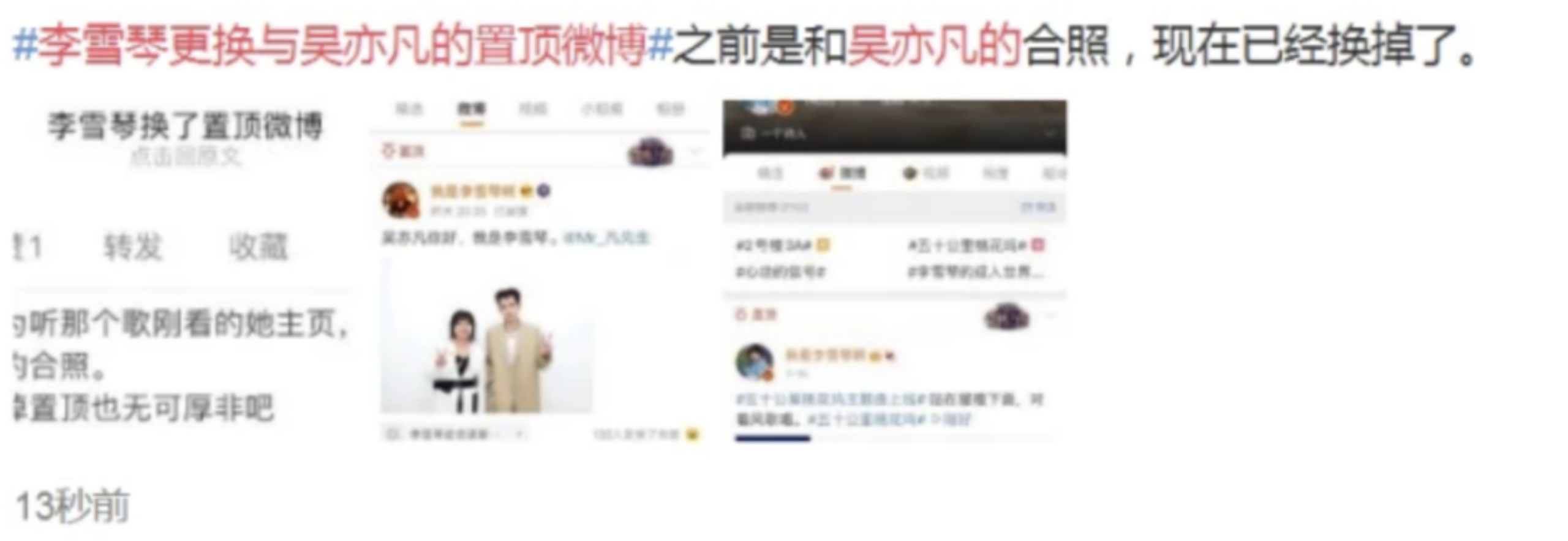 他的铁杆粉丝——脱口秀演员李雪琴,也换掉了和吴亦凡的置顶合影!