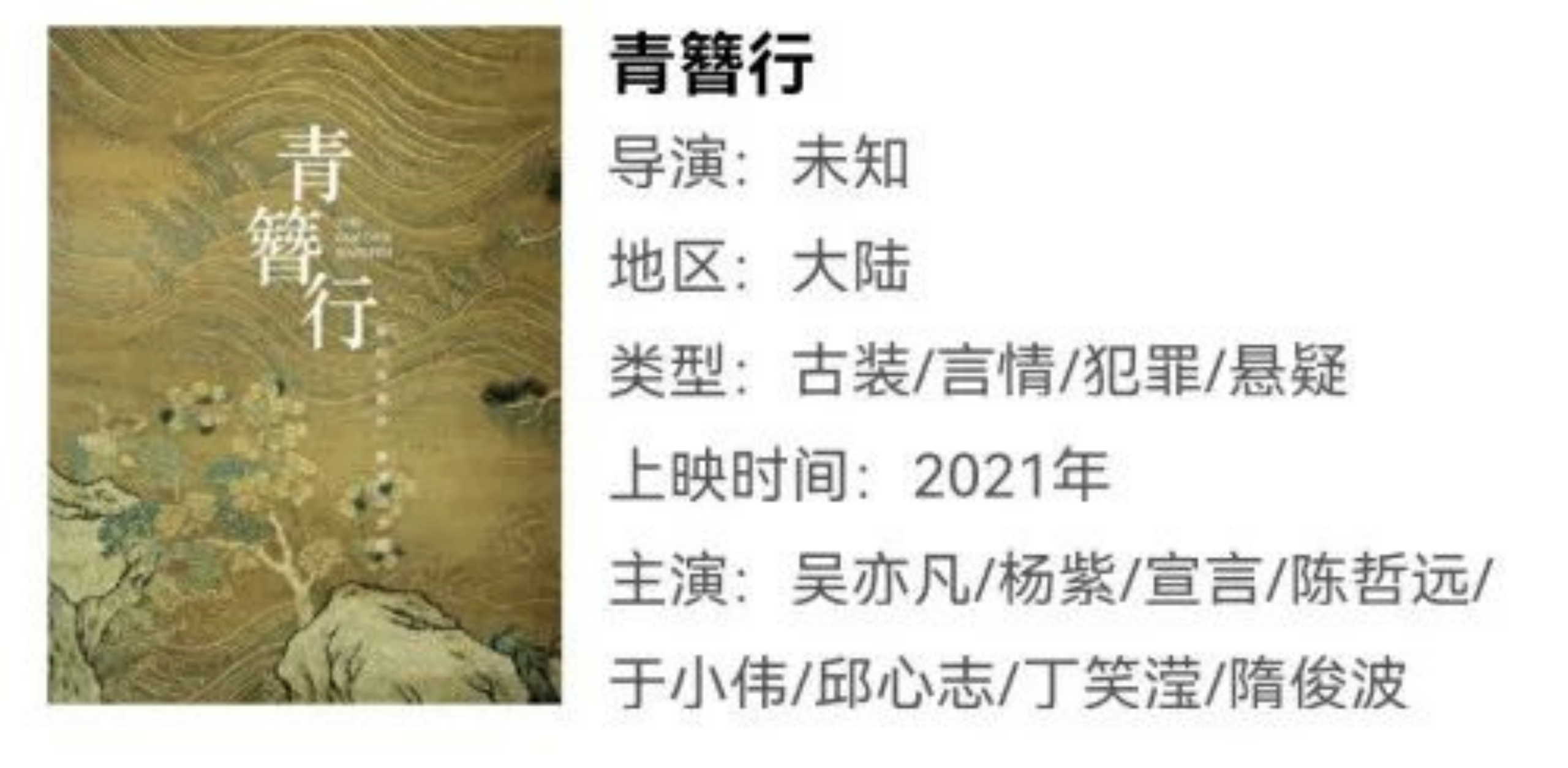 预计吴亦凡与杨紫合作出演的古装剧《青簪行》也将受到影响。该剧改编自同名小说,由企鹅影视、新丽传媒和凤凰联动影业联合出品,播出平台为腾讯视频。