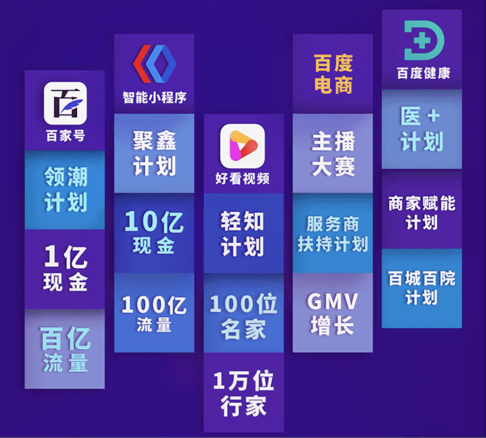 而Y作为纵向布局,则主要目标是深耕行业垂类。目前百度重点发力的垂类有两种,一种是百度百科、百度知道等产品为核心的生态护城河类产品,另一种是要重点发力的大行业大垂类,如大健康、直播、电商、教育等。