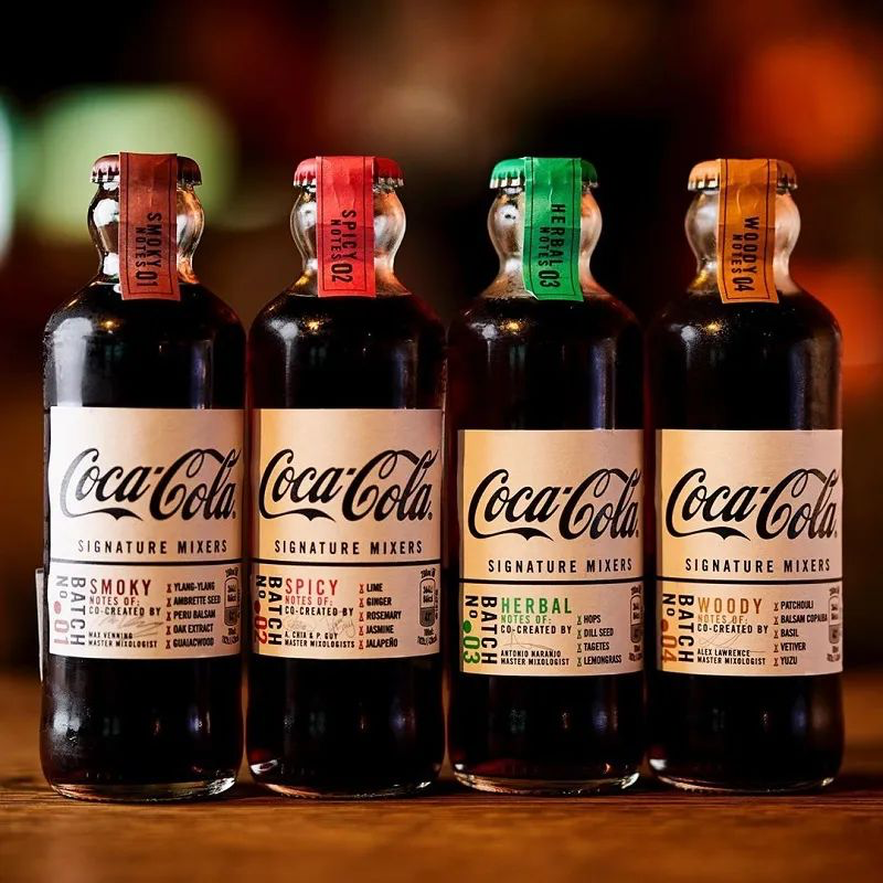 2019年4月,喜茶就瞄上了“茶饮+酒”的生意,先后推出过3款“醉醉系列”含酒精茶饮。其中最受消费者好评的“醉醉葡萄啤”,则是和科罗娜联合出品。2019年6月,可口可乐在英国推出了SignatureMixers系列,是首款混合了威士忌等高度酒的可乐。