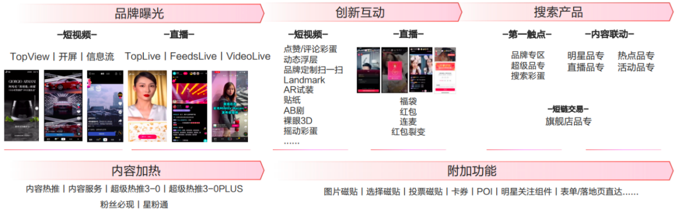 - 抖音内容加热:原生视频传播,覆盖多样营销目标
